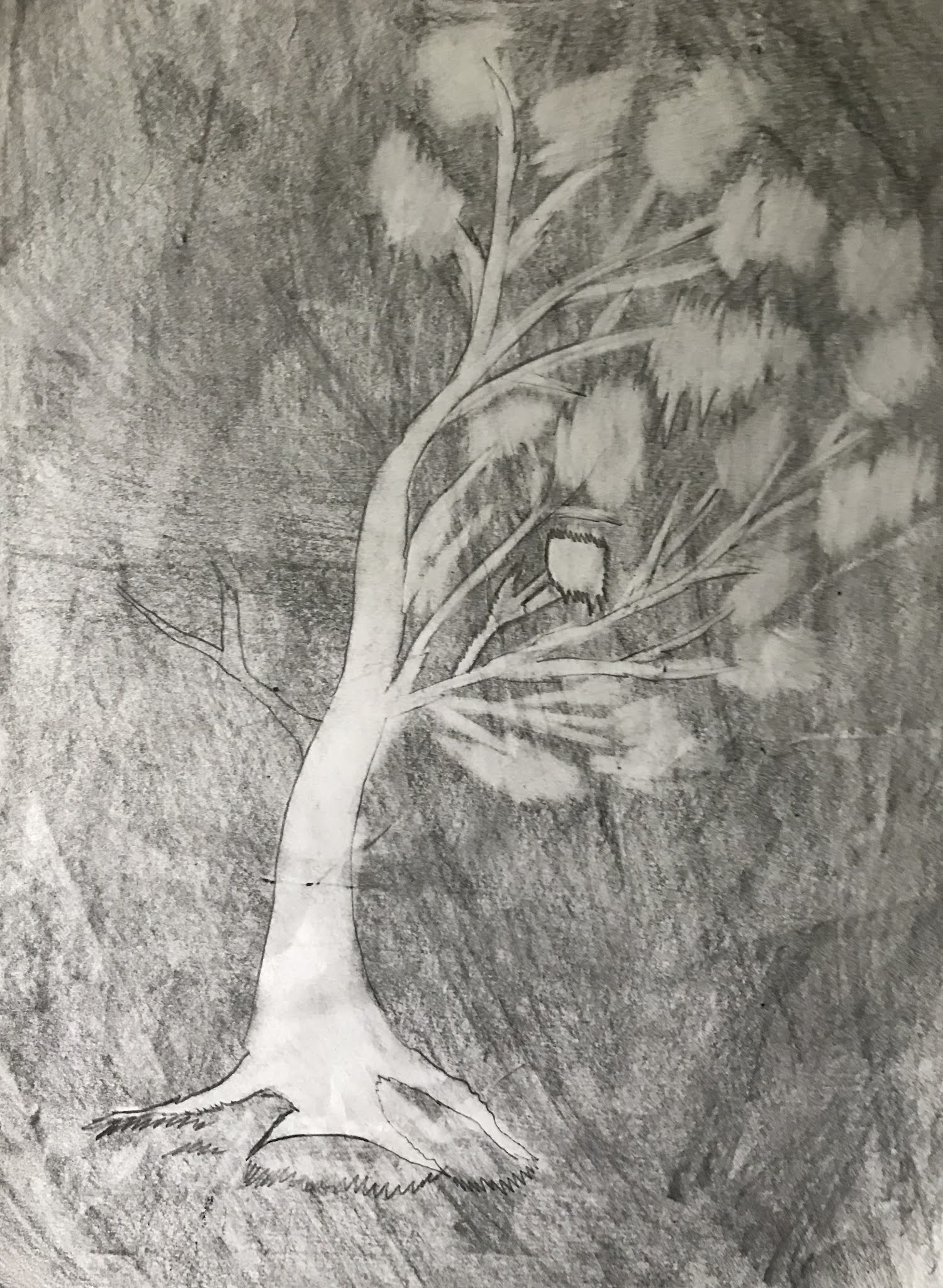 Step 5 : Fifth , draw a tree with leaves and branches .